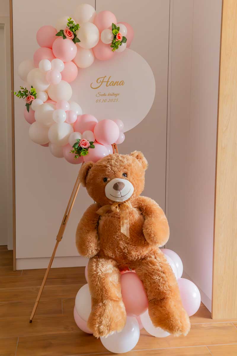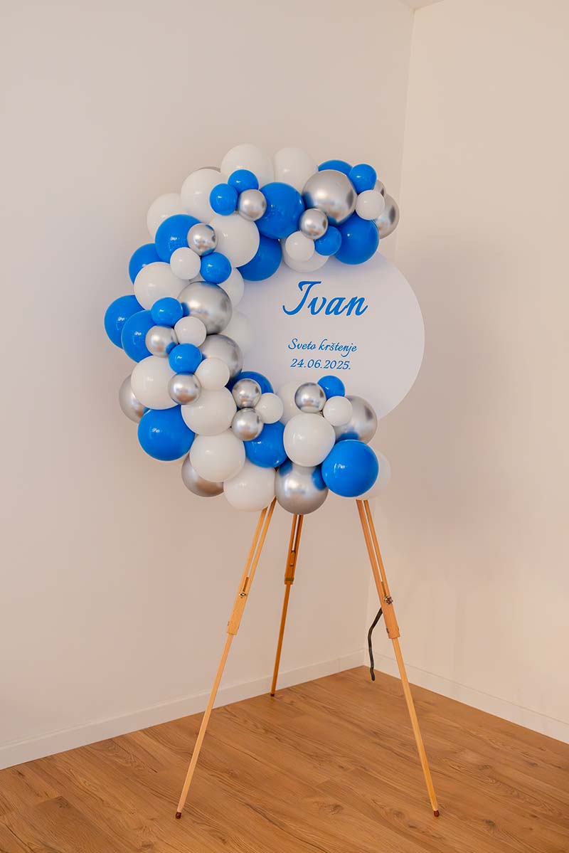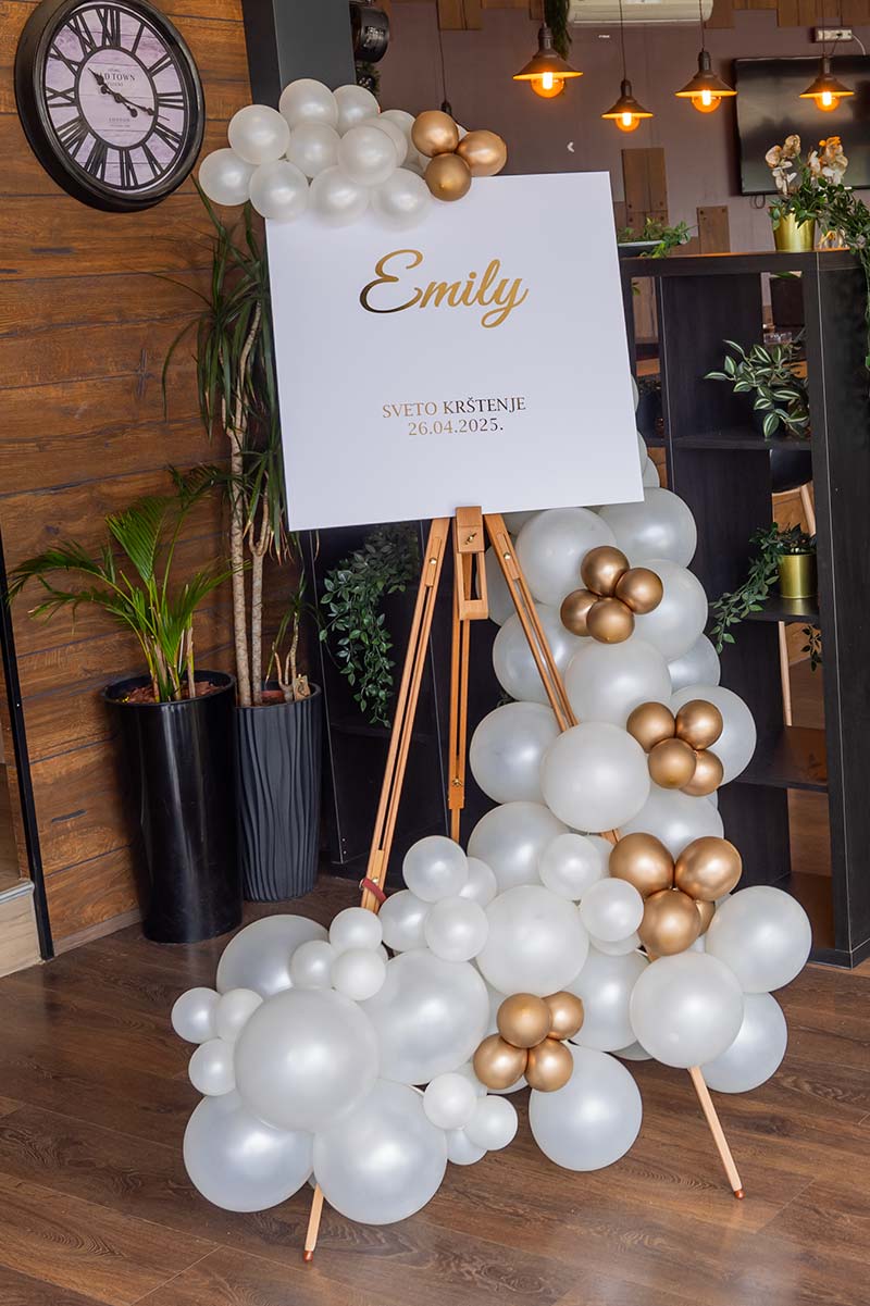 - Balonske dekoracije na štafelaju s personaliziranim natpisom