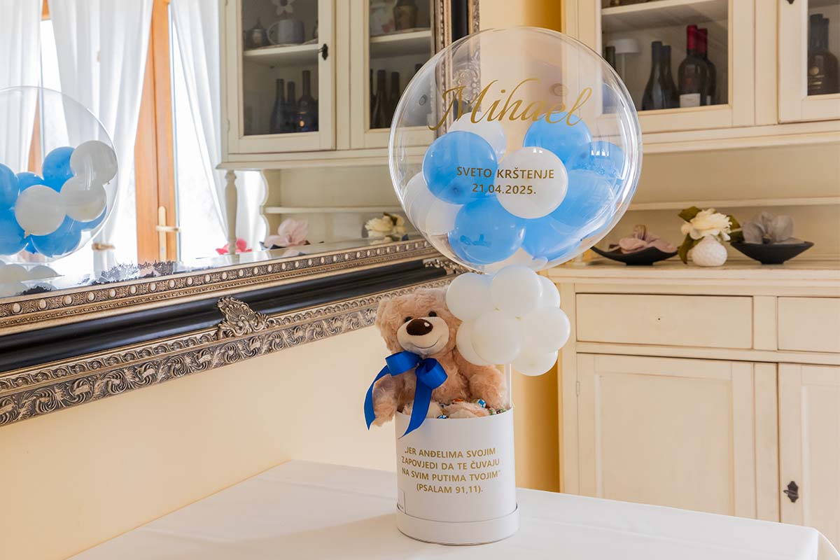Baloni za sakramente idealan su poklon i poseban način da obilježite važne trenutke u životu. Svaka dekoracija izrađena je s pažnjom i unikatna, a vi sami birate boju balona i boju natpisa.